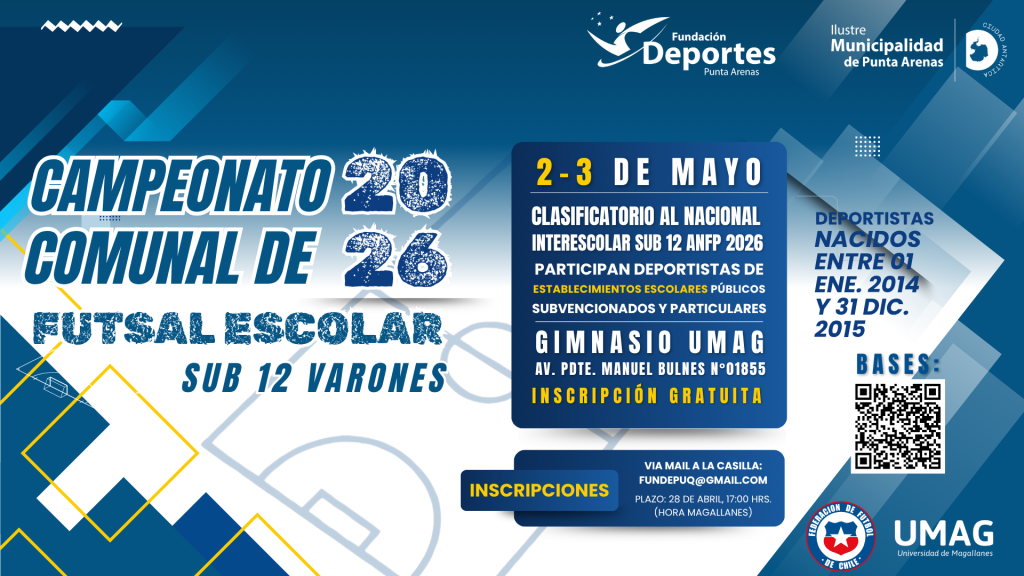 Organizado por la Ilustre Municipalidad de Punta Arenas a través de su Fundación de Deportes y con el apoyo de la Universidad de Magallanes y la Asociación Nacional de Fútbol Profesional, el campeonato comunal clasificatorio se desarrollará los días 2 y 3 de mayo en el gimnasio de la Universidad de Magallanes, ubicado en Avenida Presidente Manuel Bulnes Nº 01855.