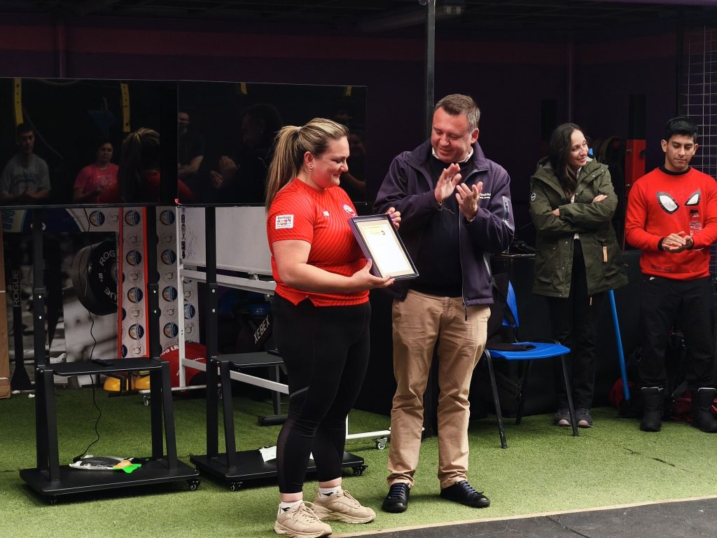 Durante la realización de la clínica, actividad que abrió la jornada el día viernes 12, el alcalde de la comuna entregó un reconocimiento a María Fernanda Valdés, destacando su trayectoria deportiva y agradeciendo el constante apoyo y aporte al levantamiento de pesas en nuestra comuna.